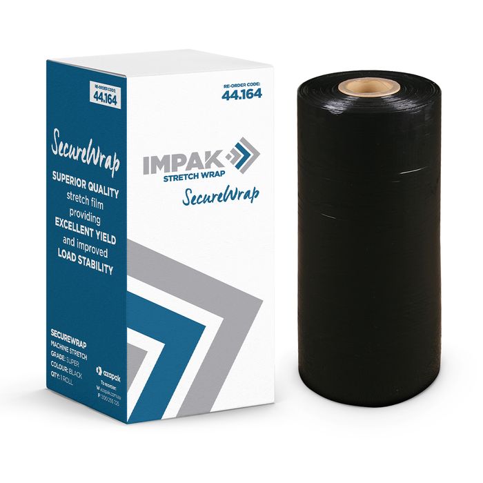 Superior grade, black cast stretch film with exceptional stretch for ultimate load stability and security