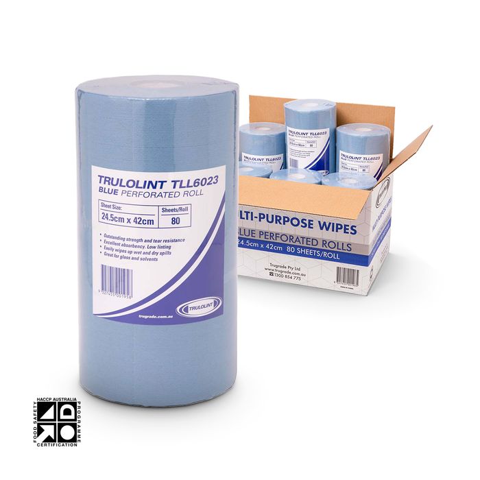 Multipurpose LoLint Wipes Blue 24.5x42cm 80/Roll (6/Ctn)