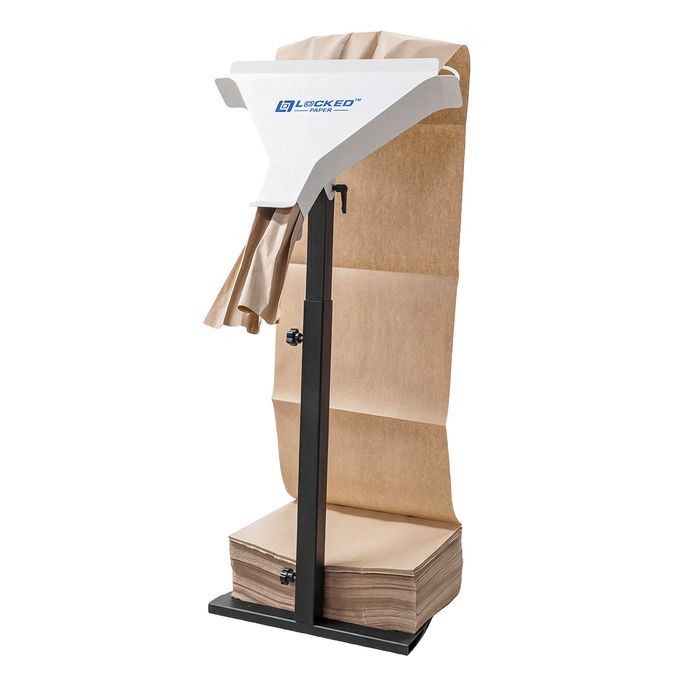 Manual kraft paper dispenser for fast and simple void filling.