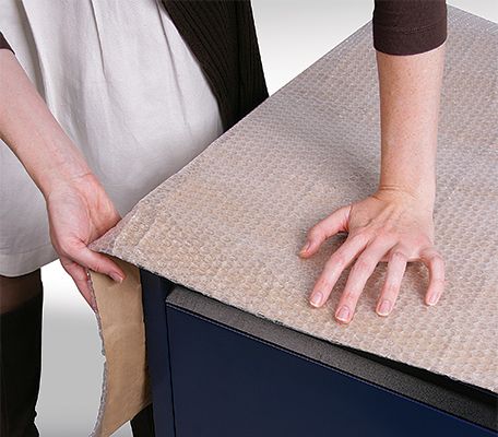 Bubble film with a kraft paper backing to prevent sweat marks on furniture.